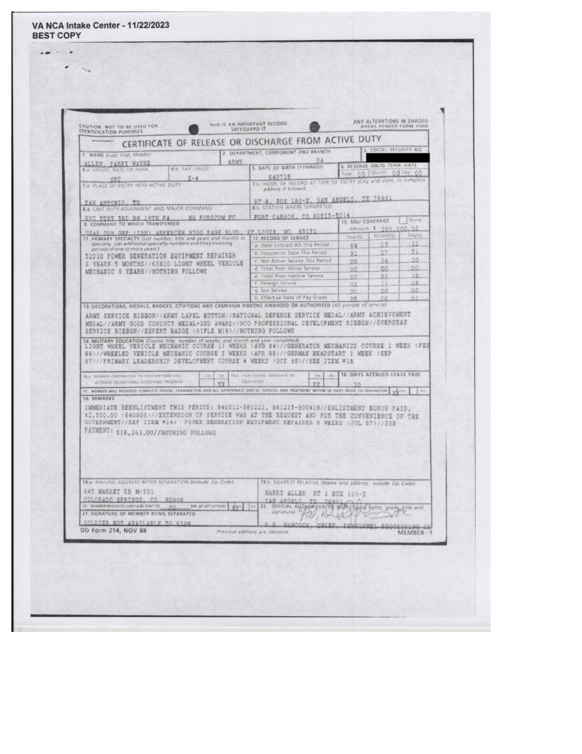 In that sense, Bobby Lee Allen’s DD-214 is not just a discharge. It is the first chapter heading.
